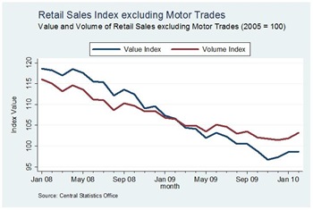 When compared with January the monthly change by value fell from +1.3% to +0.1%, while the monthly volume figure increased from +0.4% to +1.3%. What is important is that all the monthly changes seen in 2010 in these series have been positive. We are buying more stuff but at lower prices. Tweet